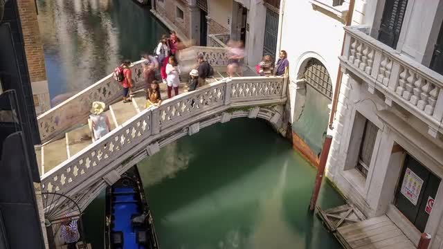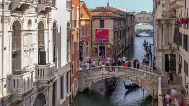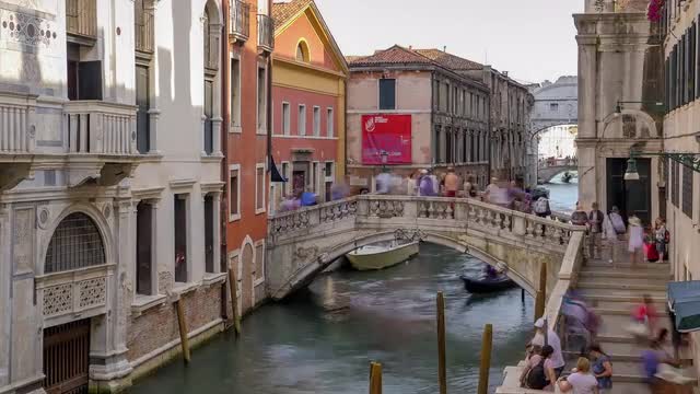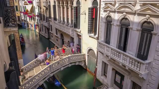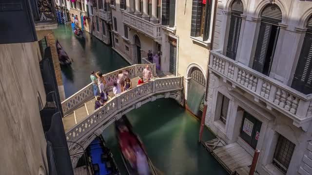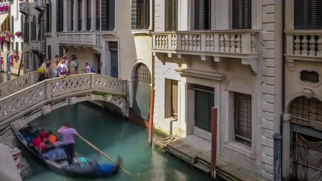 Timelapse of a waterway from the back of a boat in Venezia (Venice), Italy