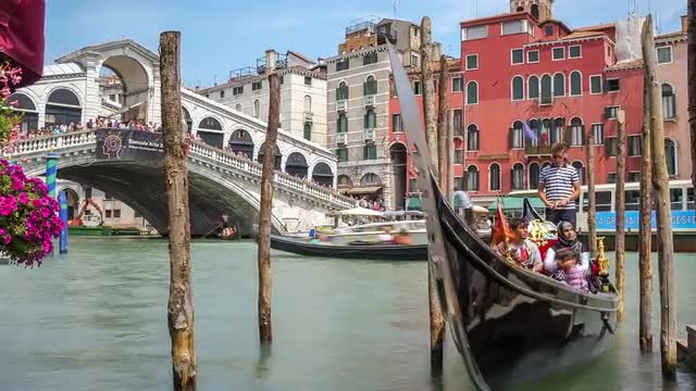 Pan left timelapse of a waterway and boats in Venezia (Venice), Italy