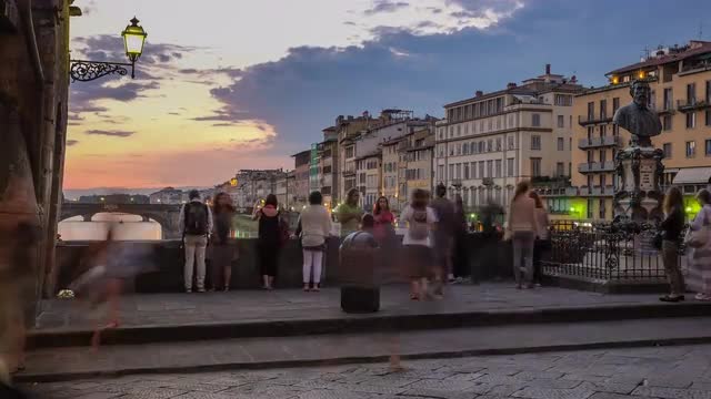 Street view sunset timelapse with water in Firenze (Florence), Italy