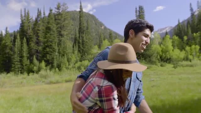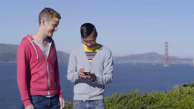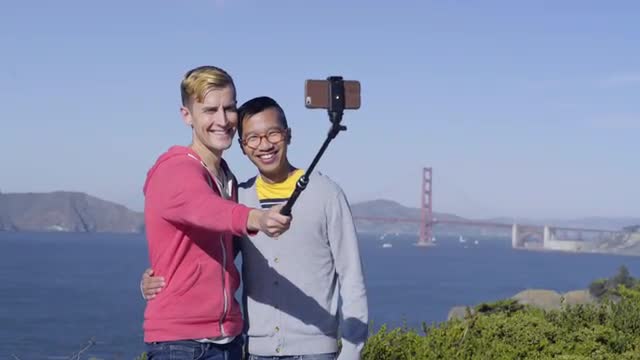 567693 - Closeup Of Couple Taking Selfies At A Marina (Young Woman On Boyfriend's Back)