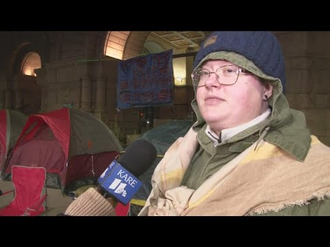 Dozens of protestors set up camp outside Minneapolis city hall