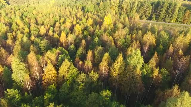 Time-lapse of sun rays revealing light fog movement through evergreen trees in a costal forest.