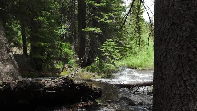 Walk along a trail while looking across a small stream bed to the lowland costal forest on the opposite side.