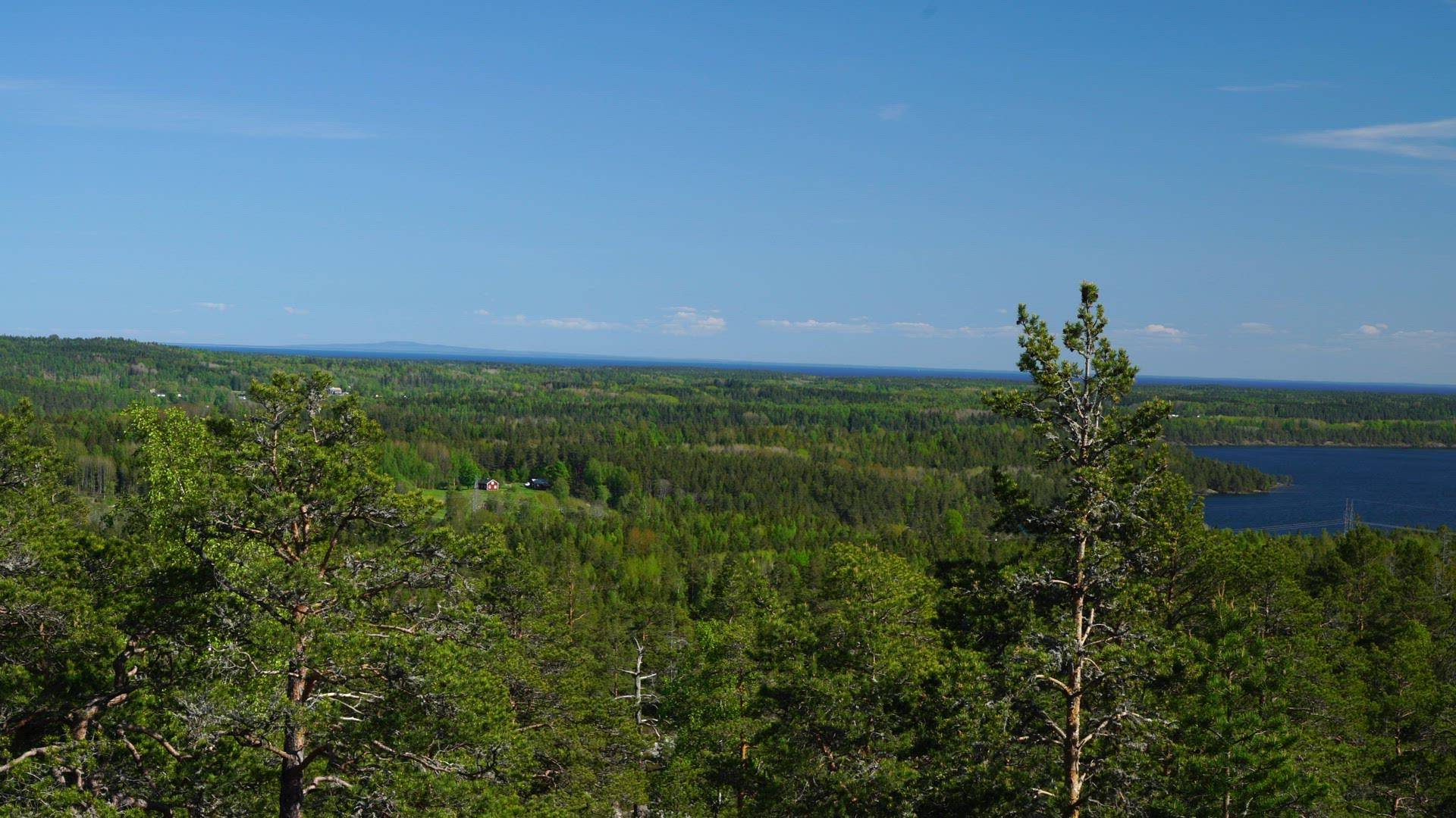 2191672 - view over trees and lake - distant isolated farm in forest