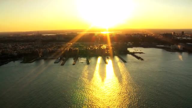 Aerial view of the Skyline of New Jersey and Harbors along the Hudson River at Sunset, North America, USA