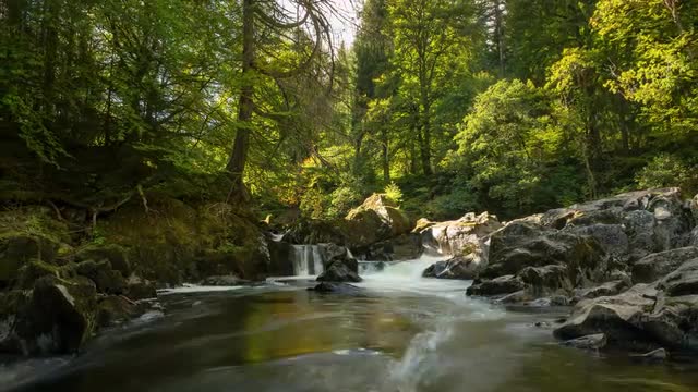 1018553 - Scotland - Forest Waterfall - Sunny Day - The Hermitage