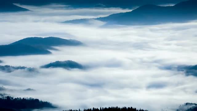 565591 - 4K Fog Moving through Trees Lake Tahoe Timelapse