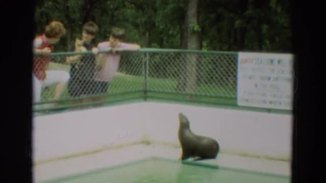 650531 - 1965: people looking down over a fence into an enclosure with a seal OMAHA, NEBRASKA
