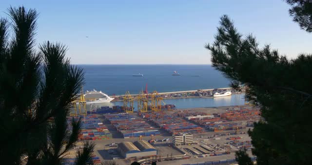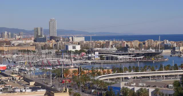 749799 - spain sunny day montjuic mountain barcelona port panorama 4k