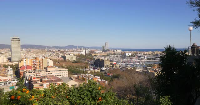 749768 - spain sunny day montjuic park port vell panorama 4k barcelona