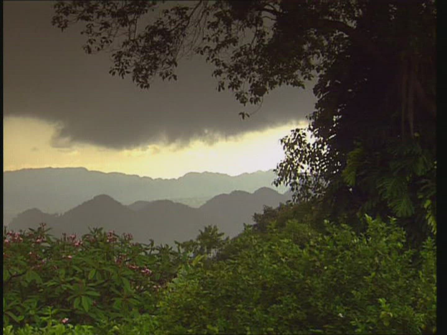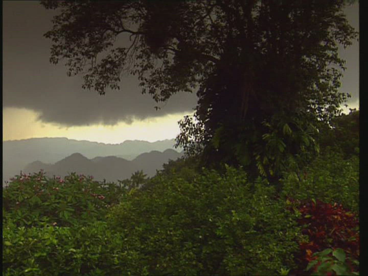 2273108 - Tahitian island mountains reflect in ocean water, view from surface