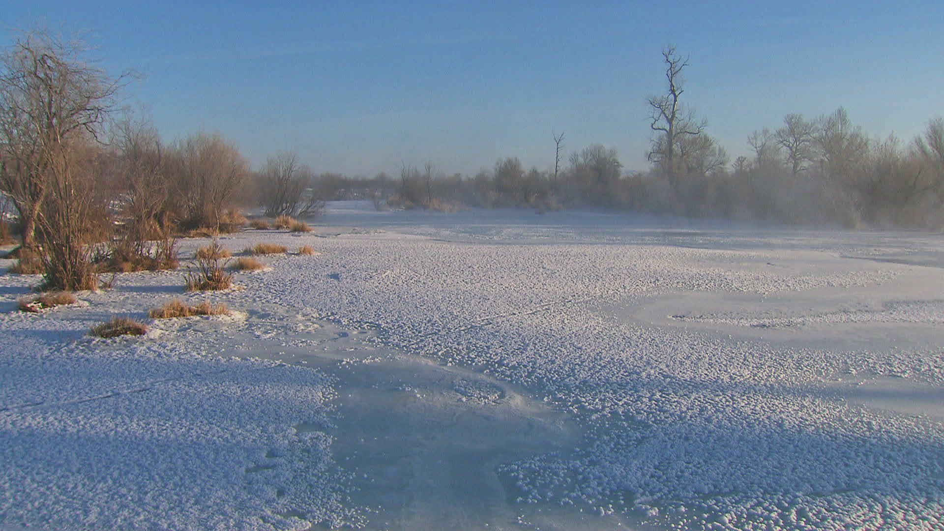 > Surfer dips below surface as icy blue clear water crashes into powerful dangerous barrel of wave