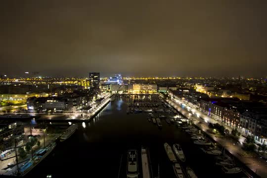 Time-lapse of Downtown Dallas Skyline showing the glowing LED lights, star trails and airplanes.