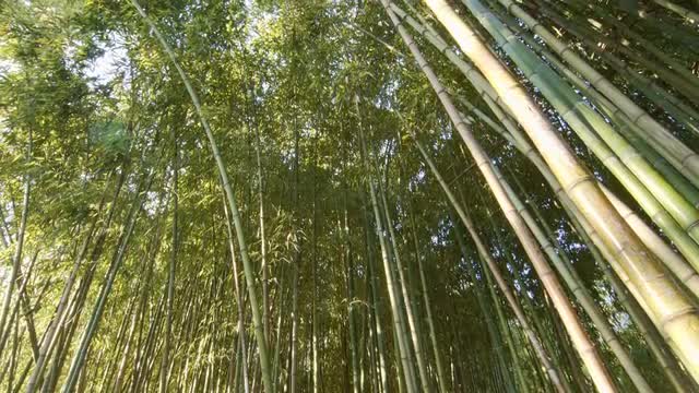 693940 - CU SELECTIVE FOCUS Young woman walking amongst and touching bamboo trees/ Beijing, China