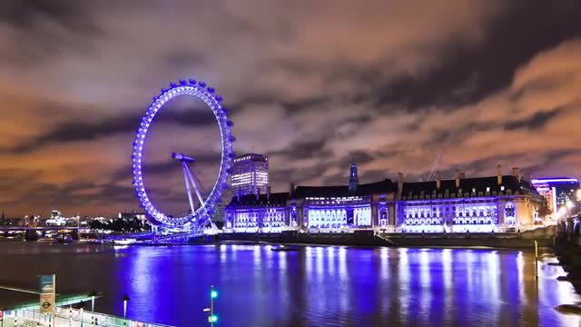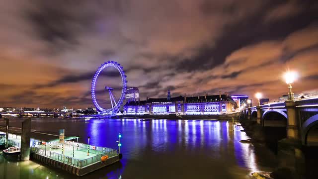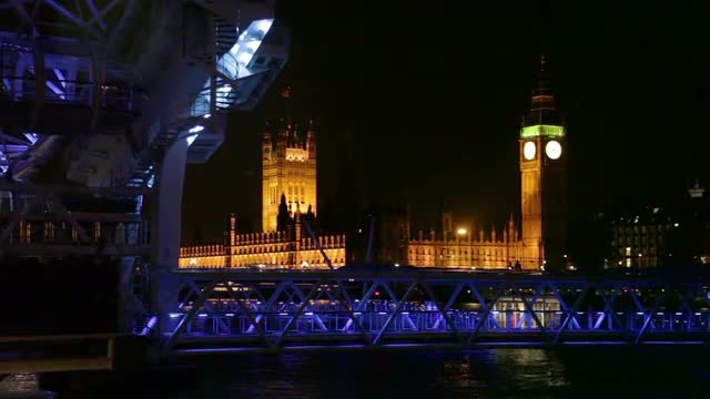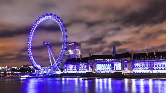London Eye observation wheel and Houses of Parliament at night, London, United Kingdom