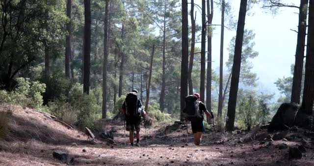 645795 - Two Young Tourist Hikes Away, Through Thick Forest