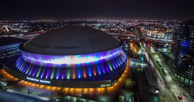 The sun rises behind downtown New Orleans and the Superdome during a brisk January morning.