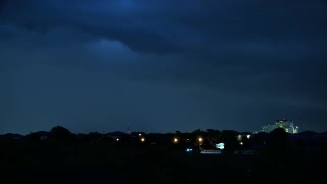 2566973 - Intense supercell thunderstorm with large lightning bolt strikes approaches farm at night, Texas, 4K