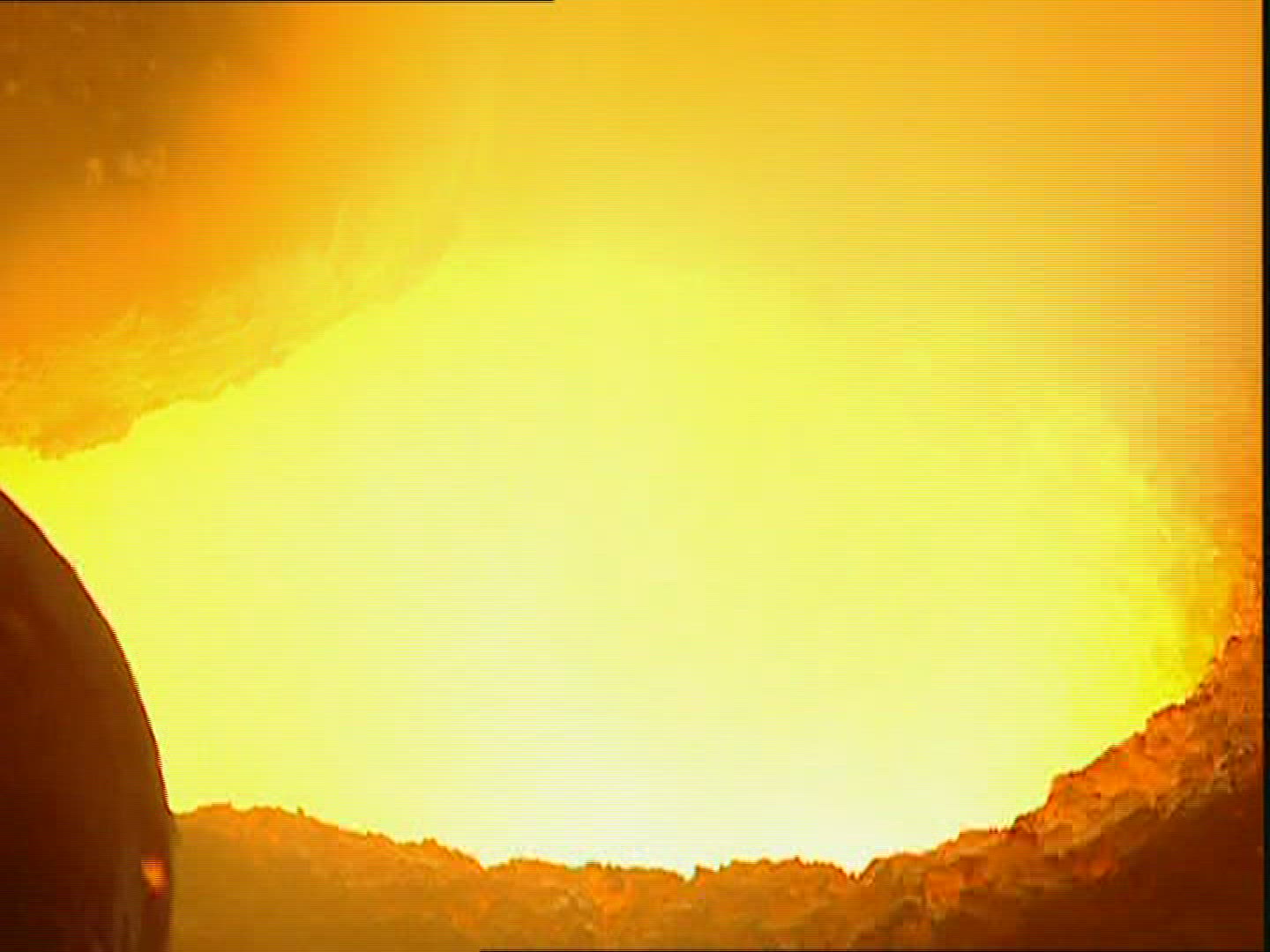 505899 - Boiling Liquid Metal, Melting Metal, Bright Yellow Metall is Boiling in the Boiler, Flying Sparks, D