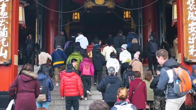 > Time Lapse - Crowd Outside Entrance of Sensoji Temple - Tokyo Japan