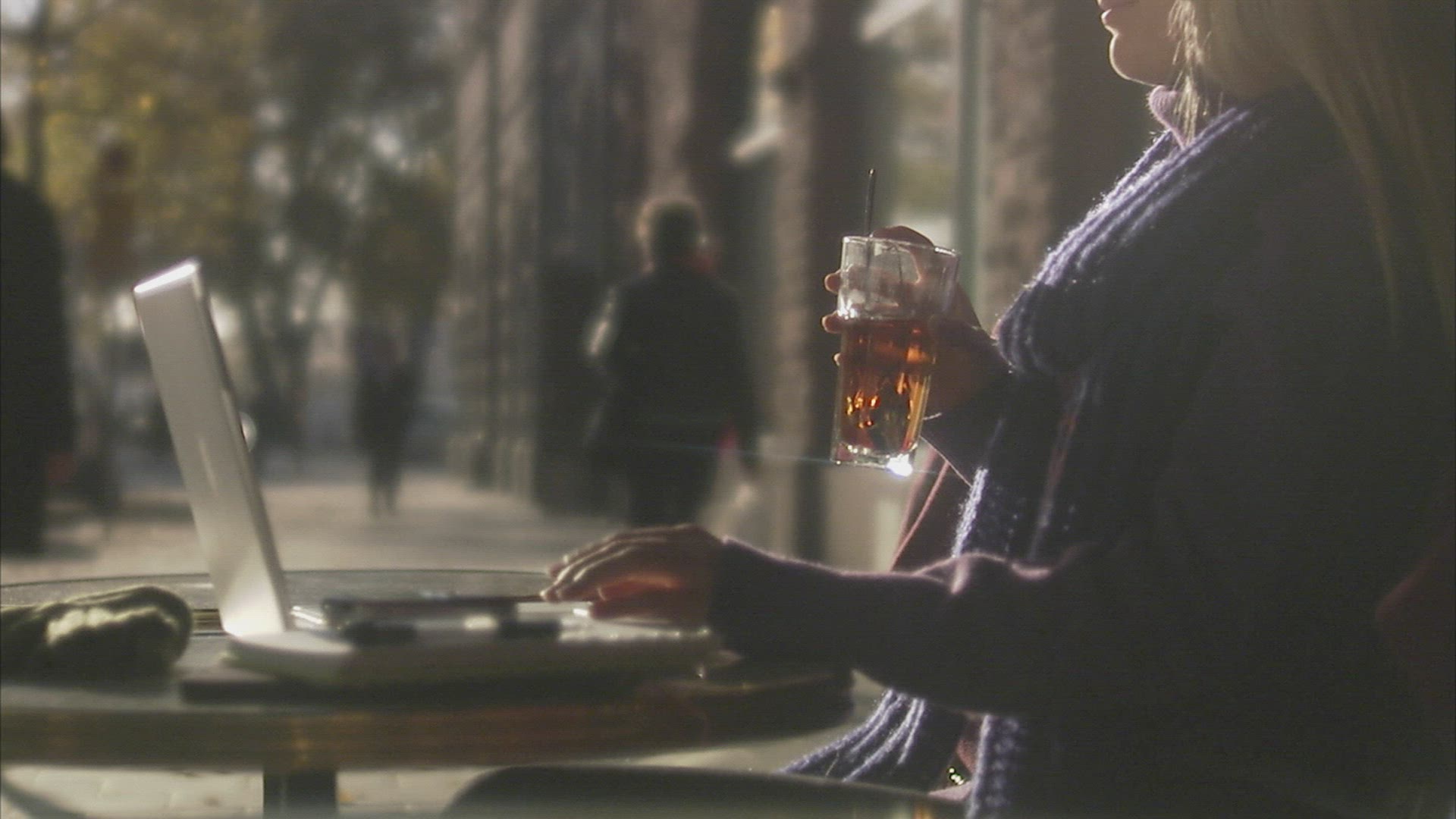 A young women drinking a cup of coffee. She enjoys the warmth and flavor of the drink. Hot steam blowing of the cup.