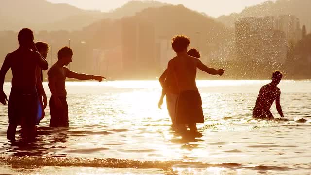 247896 - Friends play in the water in Rio de Janeiro.