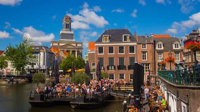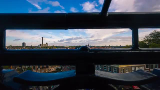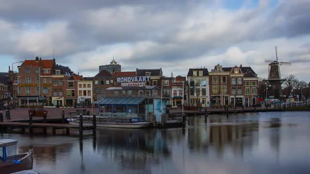 > Old city gate Morspoort, Leiden, The Netherlands, 4K hyperlapse