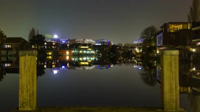 Hyperlapse along the old city moat of the beautiful old Morspoort, one of two remaining city gates of Leiden (Holland/The Netherlands) during blue hour