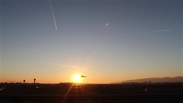 > Sun and plane landing