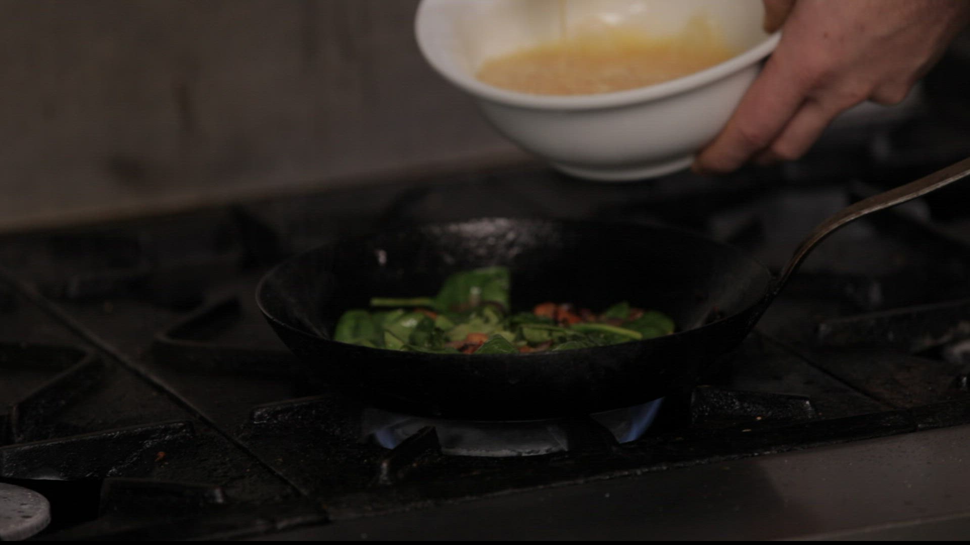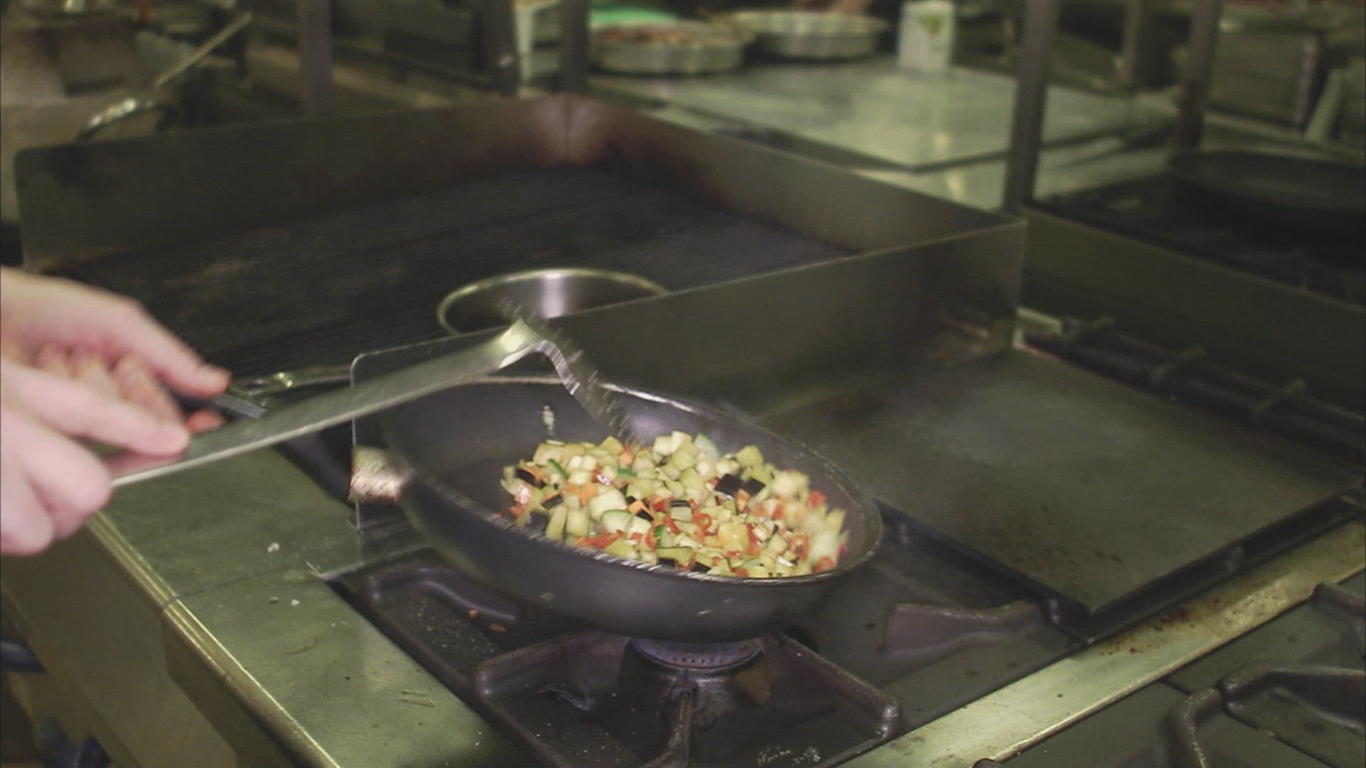 602430 - Chef cooking the food on a stove with high flames