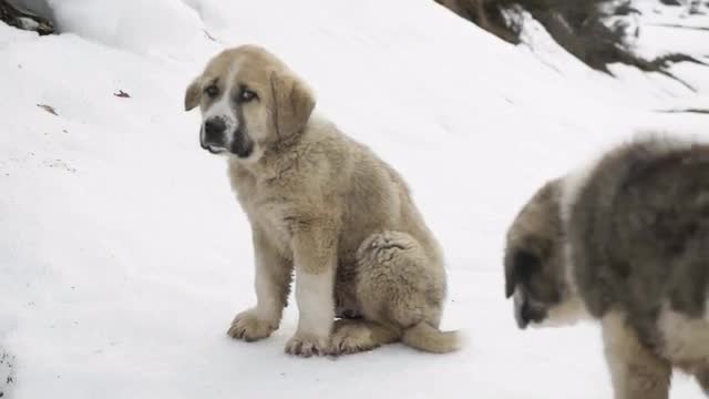> Dog sled in the snow road