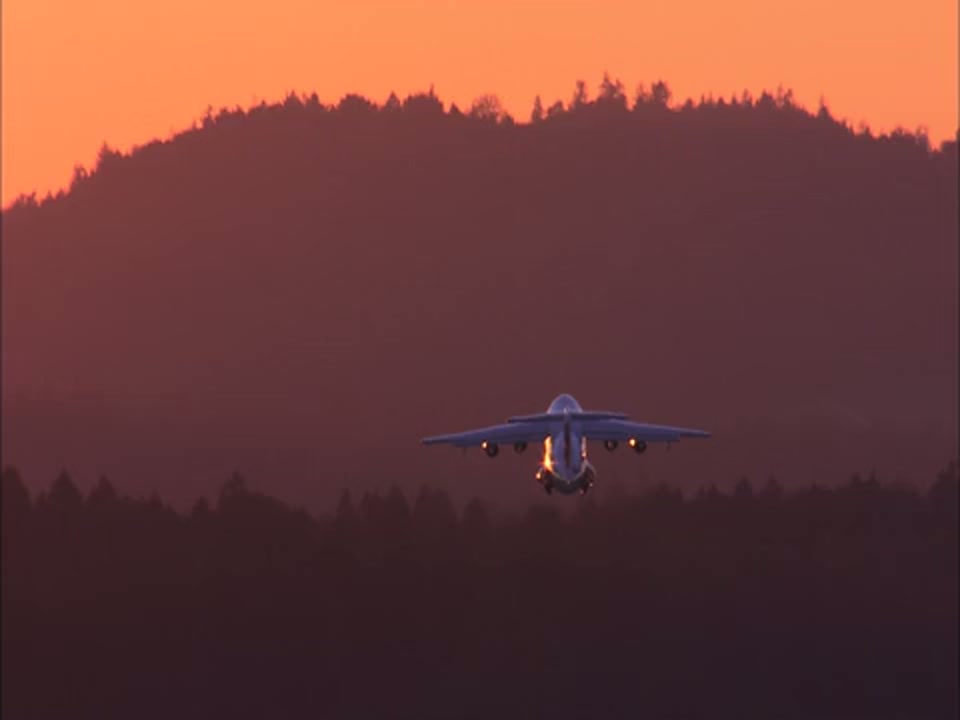 1031205 - Plane taking off at golden sunset