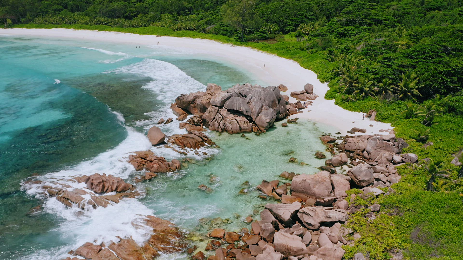 2160733 - Aerial drone footage of tropical beach Anse Coco. Paradise like blue lagoon and rainforest around. L