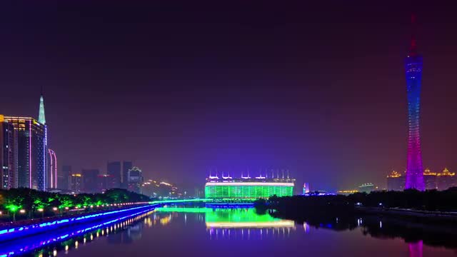 613769 - guangzhou bridge river canton tower night panorama 4k time lapse china