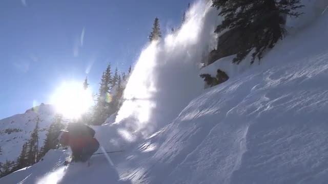 481421 - Slow Motion Ski Drop - Fresh Powder - British Columbia