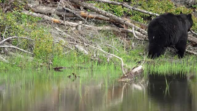 Ethereal reflections in water of clouds and tree branches move with the wind.