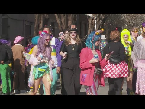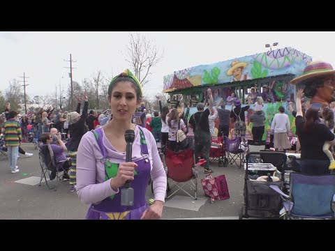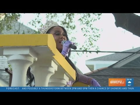 The 2024 Zulu Queen, Angélique Roché, arrives along the St. Charles parade route.