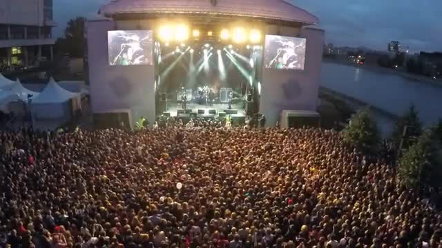 616929 - Aerial shot of outdoor concert with excited viewers