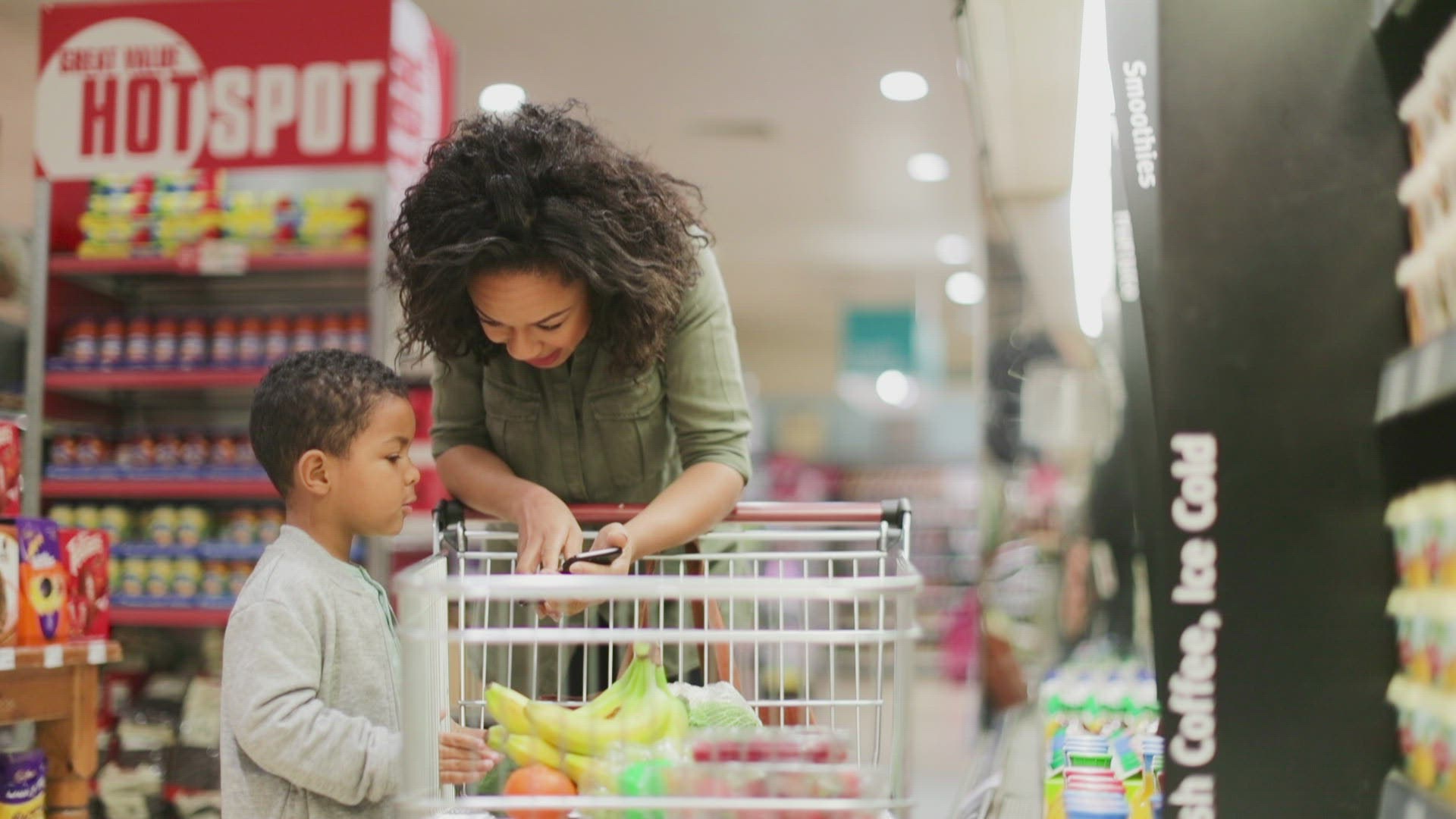 256040 - Young woman shopping in supermarket and choosing vegetables