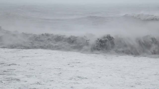 > Waves arrive ahead of storm, night, moving left to right, 4K