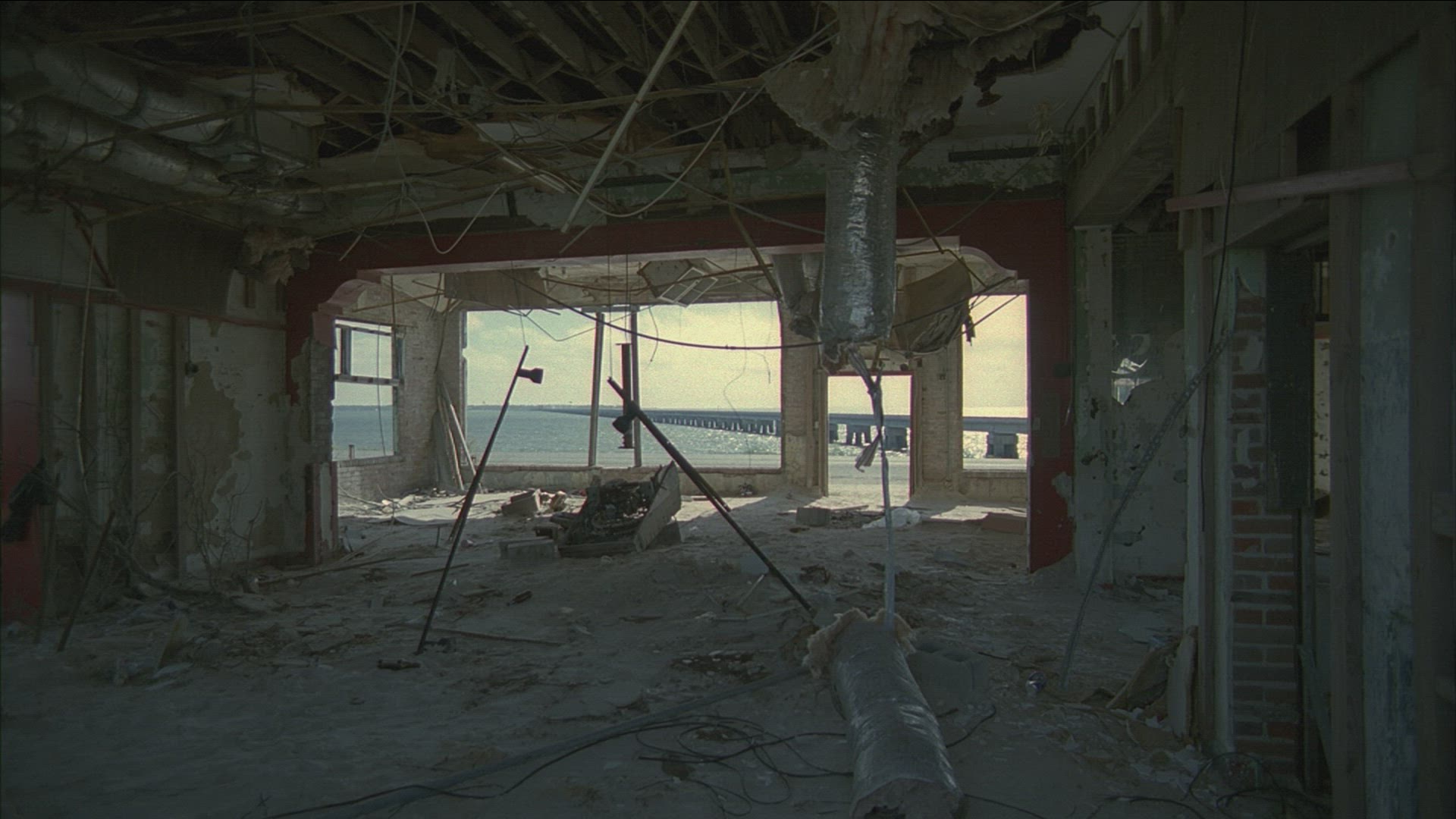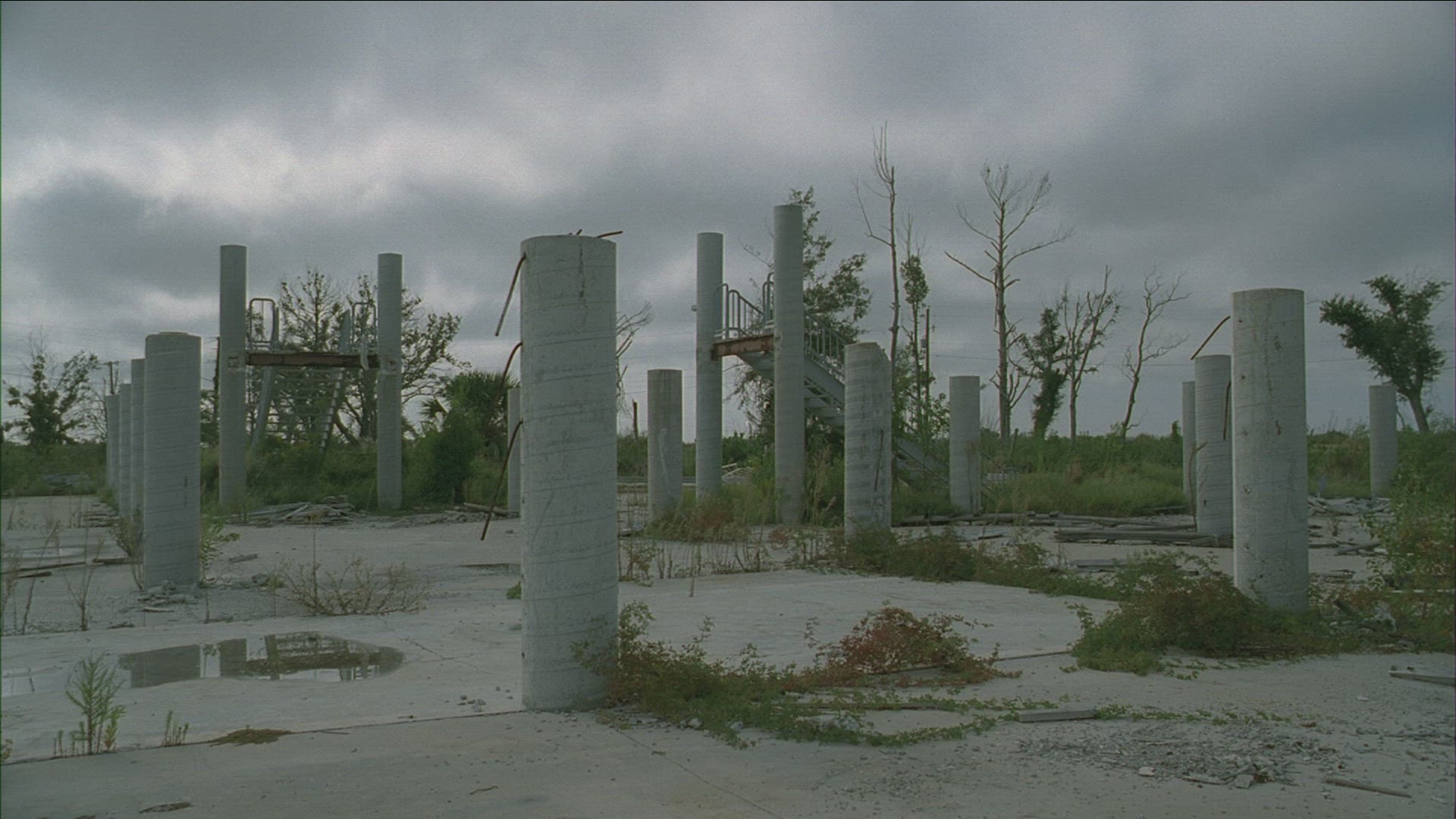> Pan of building washed out by Hurricane Katrina storm surge