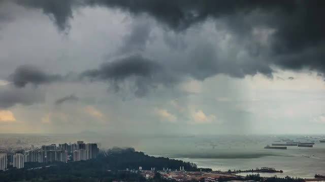 Wind and rain increase over building as Hurricane Katrina arrives, HD video.