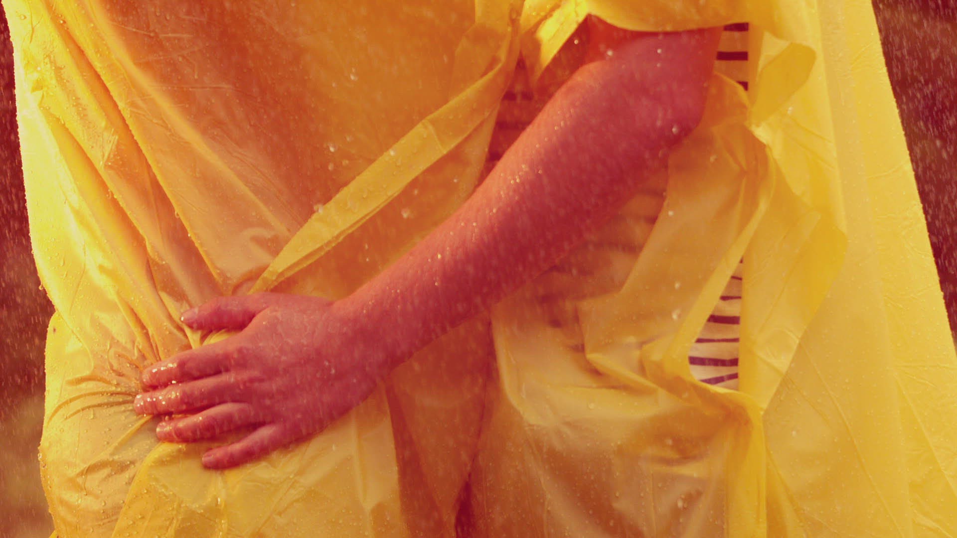 Woman walks in rain as Hurricane Katrina arrives, HD video.