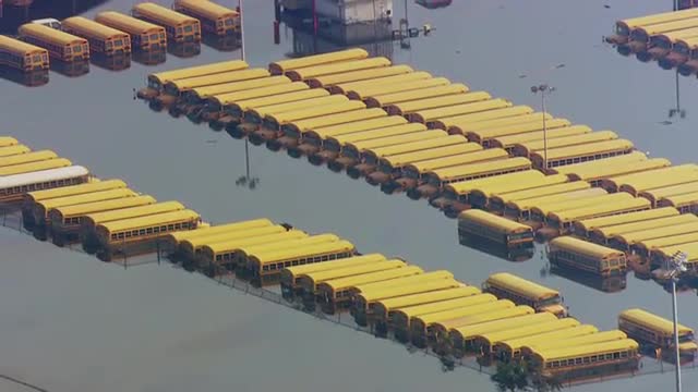 Cars, flooded parking lot, storm surge, Hurricane Katrina, 4K