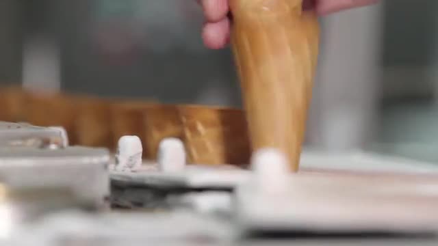 Stage of packing the product during ice-cream production at Pure Line dairy factory