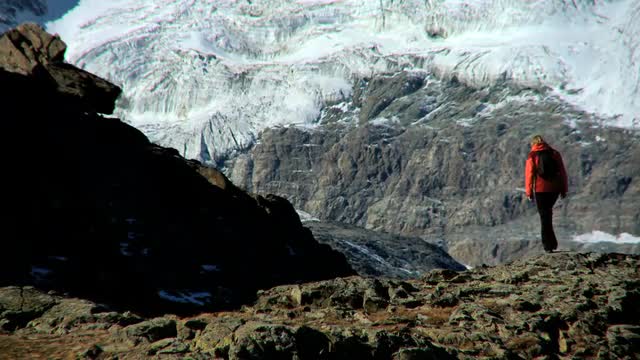 > Distant Hiker Enjoying Fertile Panorama of Arctic Region