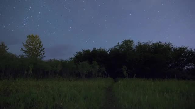 312844 - Time-lapse of stars moving in the sky sillouetted through trees over Fort Davis, Texas.