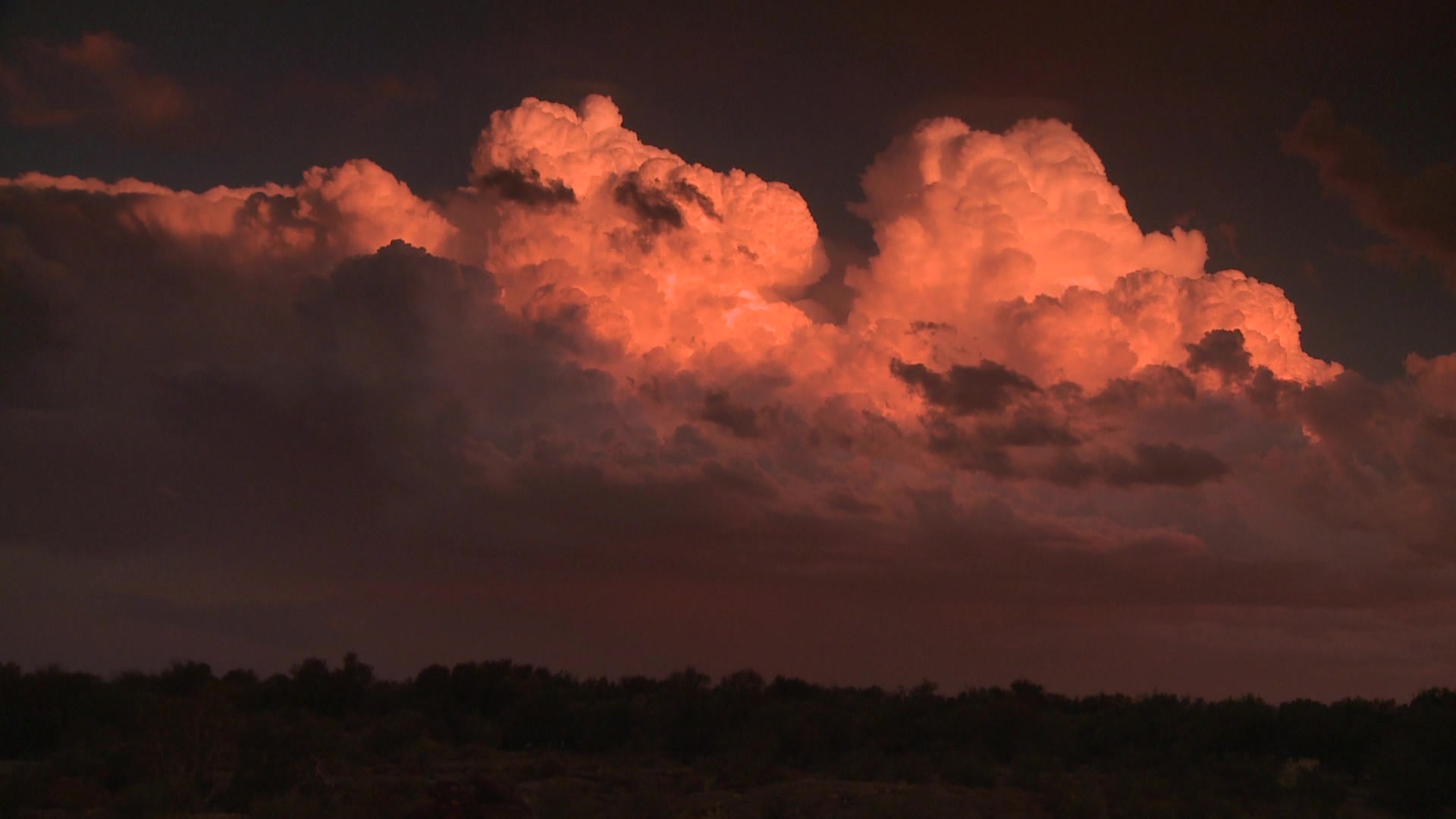 Timelapse shot of puffy clouds at sunset