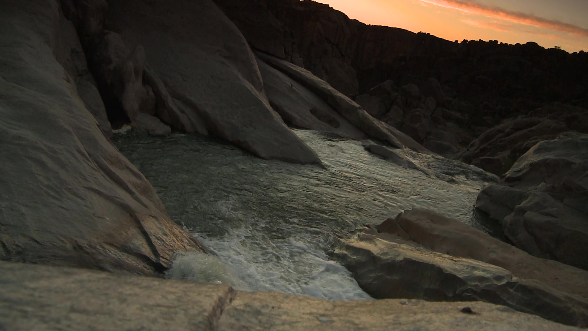Locked off mid shot of a flowing stream