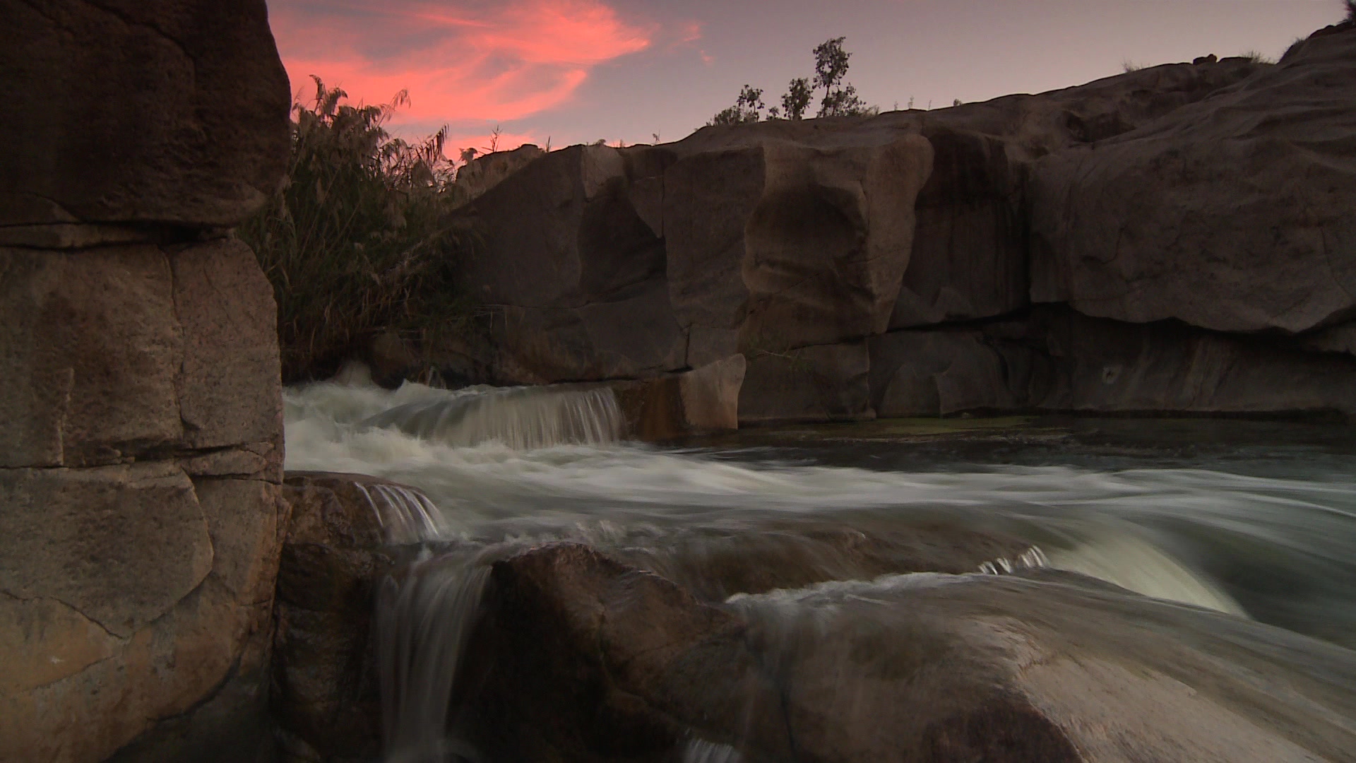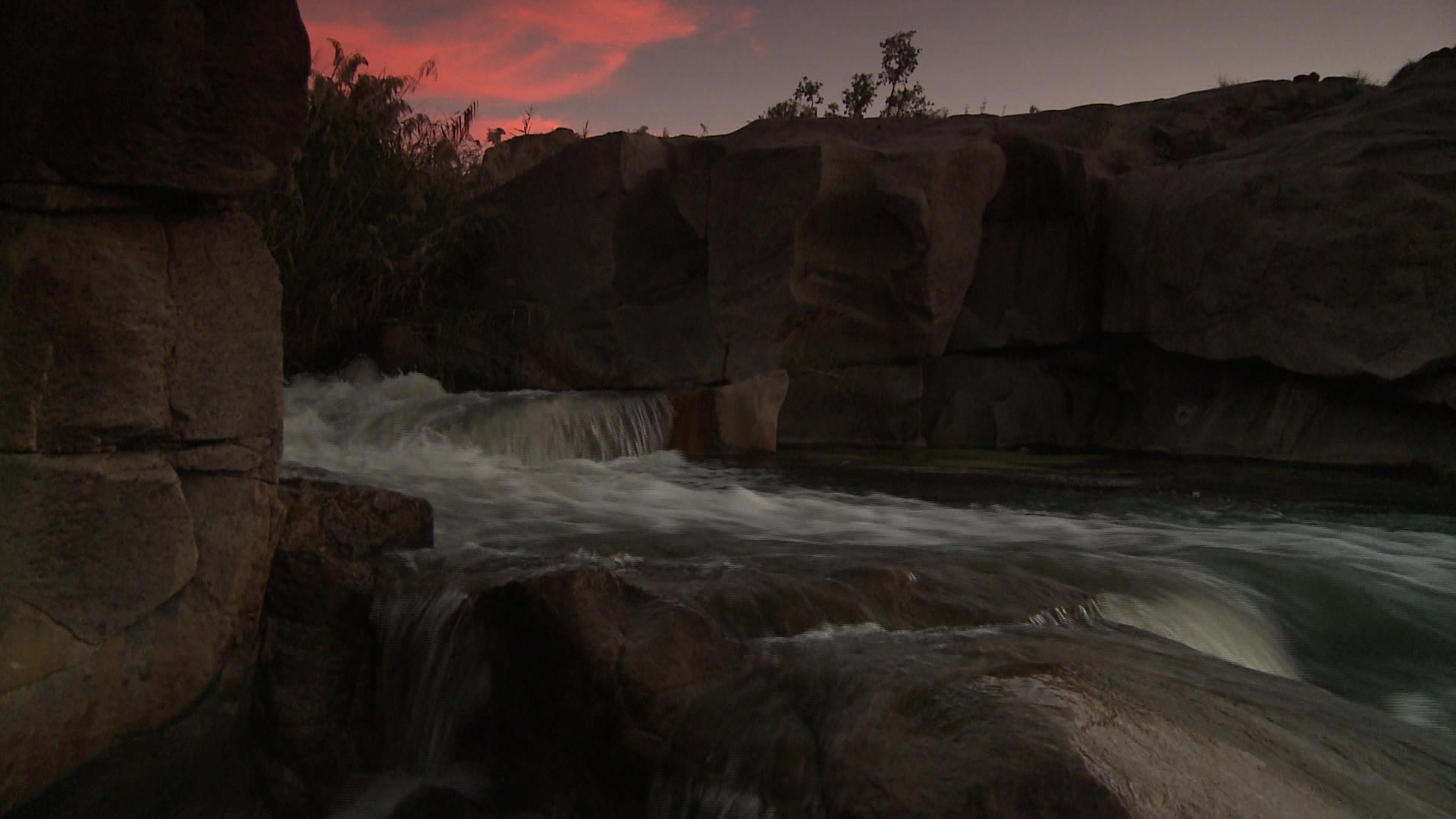 2563435 - Locked off mid shot of water cascading over rocks